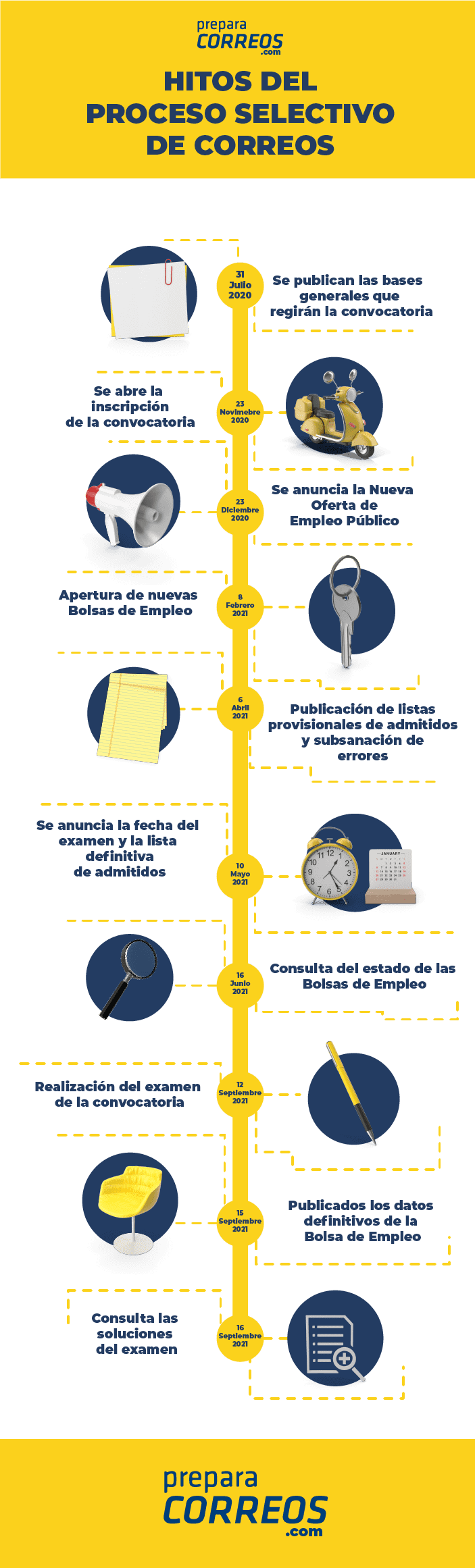 Para completar la línea del tiempo tendremos que esperar a que Correos anuncie las notas definitivas y las fechas en las que los aspirantes tendrán que formalizar el contrato.