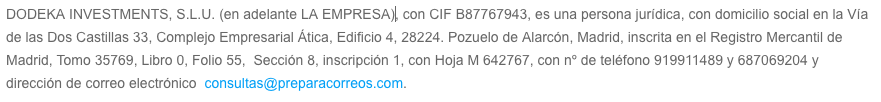 Si no deseas recibir nuestras comunicaciones, puedes oponerte en cualquier momento a través de consultas@preparacorreos.com, o a través del procedimiento de baja automática habilitado en nuestras comunicaciones electrónicas.