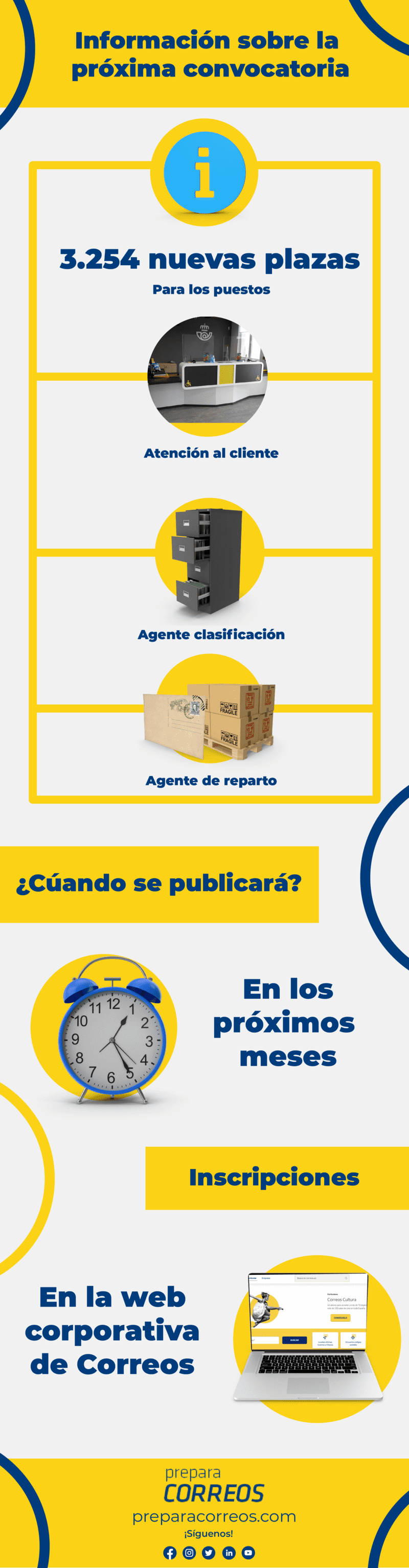 Si quieres prepararte las oposiciones de Correos y conseguir una plaza como funcionario no dudes en pedirnos información. En Preparacorreos te ofreceremos todo lo que necesitas para ir más que preparad@ el día del examen de las oposiciones. La próxima convocatoria se espera para 2025 con una oferta de más de 4.000 plazas.